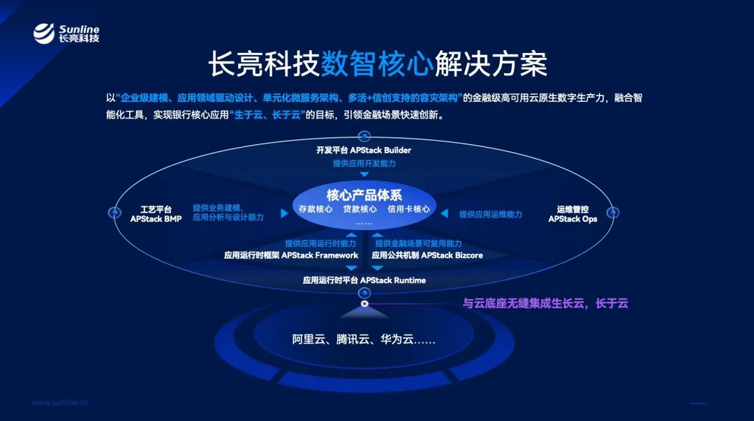 在金融業務與數智技術的碰撞下,銀行業務逐漸向線上遷徙,數智化已成為銀行業發展的新命題。長亮科技不斷加大研發投入力度,持續縱深對業務的理解,拔高技術能力,在創新的路上攀登高峰。長亮科技數智金融核心整體解決方案以“企業級建模、應用領域驅動設計、單元化微服務架構、多活+信創支持的容災架構”的金融級高可用云原生數字生產力,融合智能化工具,實現銀行核心應用“生于云、長于云”的目標,引領金融場景快速創新。