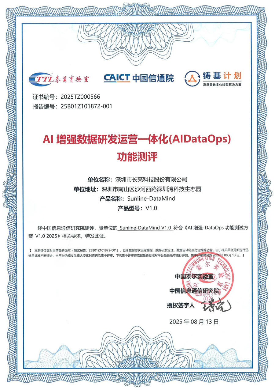 此次通過中國信通院權(quán)威測評(píng),不僅標(biāo)志著DataMind技術(shù)能力得到行業(yè)高度認(rèn)可,更夯實(shí)了長亮科技在金融數(shù)據(jù)管理領(lǐng)域的領(lǐng)先地位。未來,長亮科技將以 AI 與 DataOps 技術(shù)為核心,持續(xù)推進(jìn)DataMind智能化能力迭代升級(jí),賦能更多金融機(jī)構(gòu)釋放數(shù)據(jù)價(jià)值,助力其在激烈的市場競爭中搶占先機(jī)。